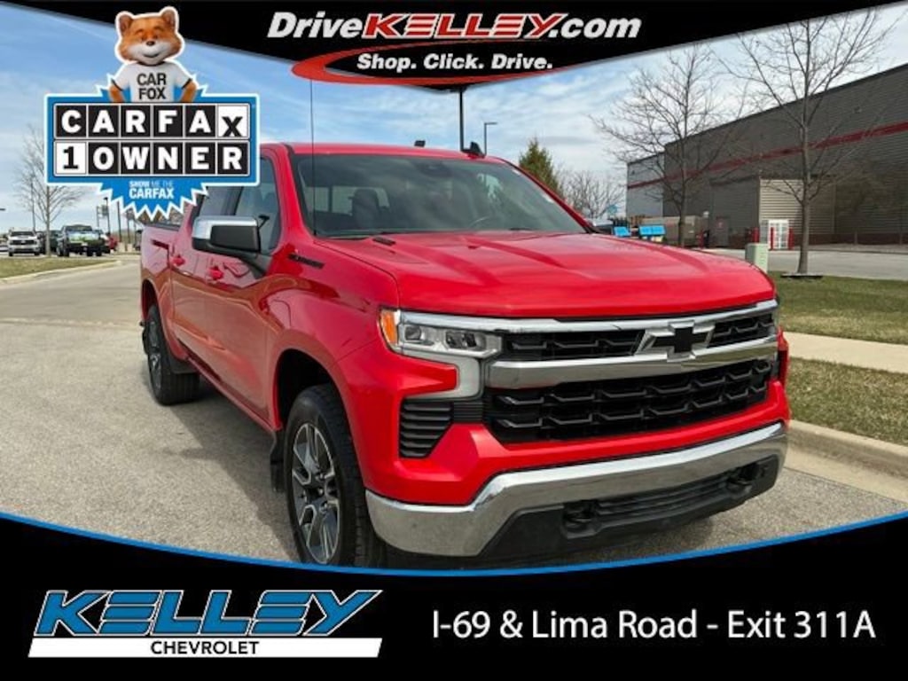 CARFAX One-Owner. Apple CarPlay / Android Auto, Backup Camera, Bluetooth, LT Package, Leather Wrap Steering Wheel, OnStar Remote App., Tow Package. Red Hot 2023 Chevrolet Silverado 1500 LT1 3.0L I6 22/27 City/Highway MPG